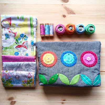 Perle Cotton 8 threads, 3 Aurifil 80wt threads, AND that large zippy pouch,
